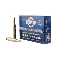 PPU PP2506H Standard Rifle 25-06 Rem 90 gr Hollow Point 20 Bx/ 10 Cs